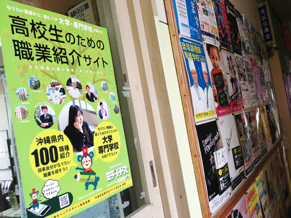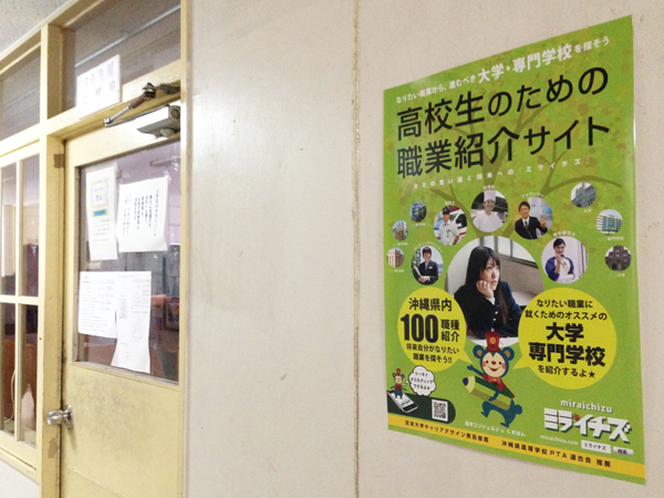 ミライチズの「協力高校」は、より多くの高校生にミライチズを知ってもらい『職業観』を高めてもらう為に、校内にポスター・フライヤーの設置の協力をしてます。また、学校によっては、キャリア教育の一環として「様々な職業を知る」「職業について調べる」をテーマにミライチズWEBサイトを活用してます。学校現場の声を共有し連携を取り合っていきます。